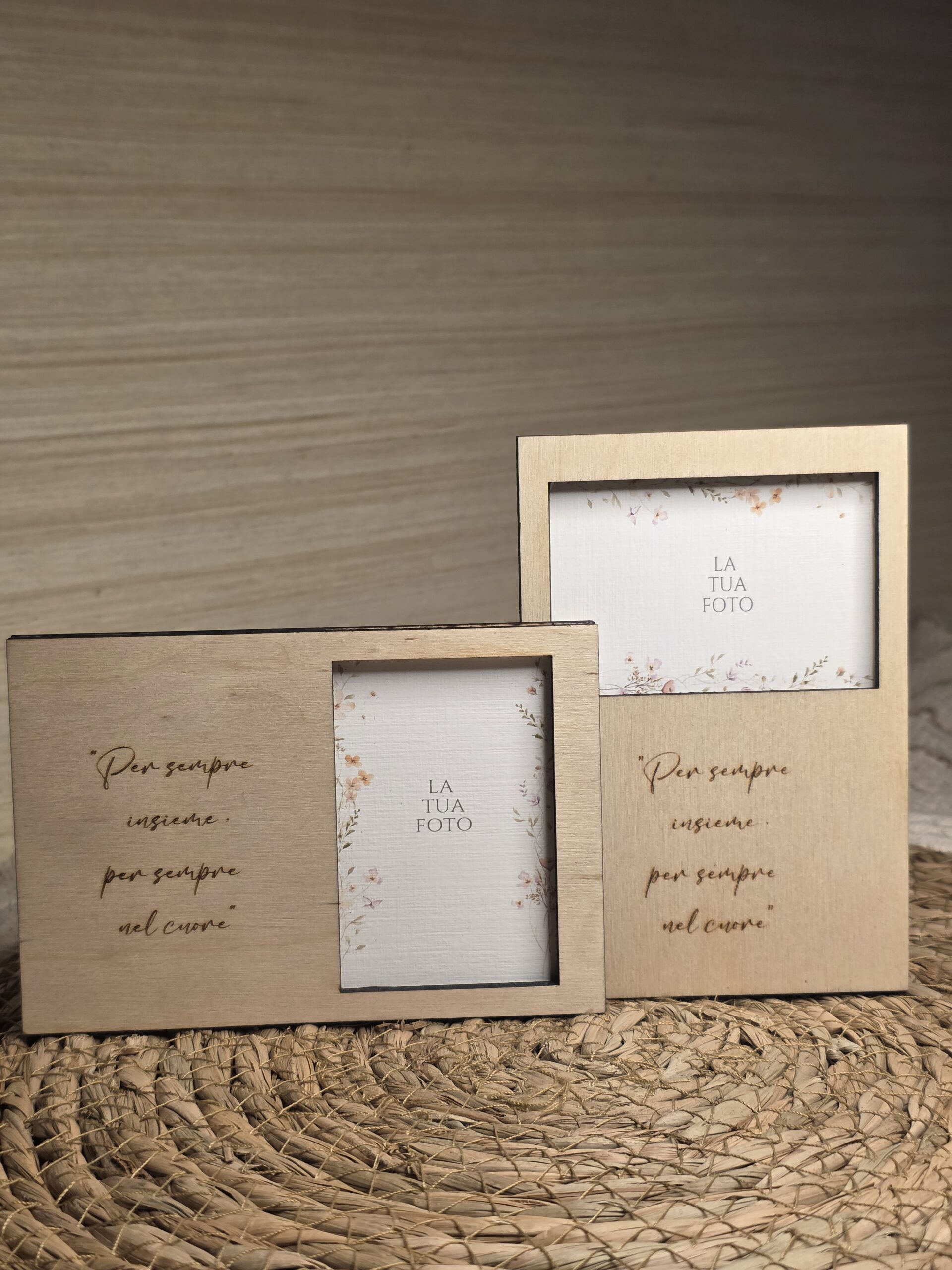 Il nostro portafoto magnetico in legno è la soluzione perfetta per conservare i tuoi ricordi più preziosi con un tocco di eleganza e originalità. Realizzato in legno con incisione, è ideale come idea regalo personalizzata per occasioni speciali come matrimoni, anniversari, battesimi o come dolce pensiero per una persona cara.