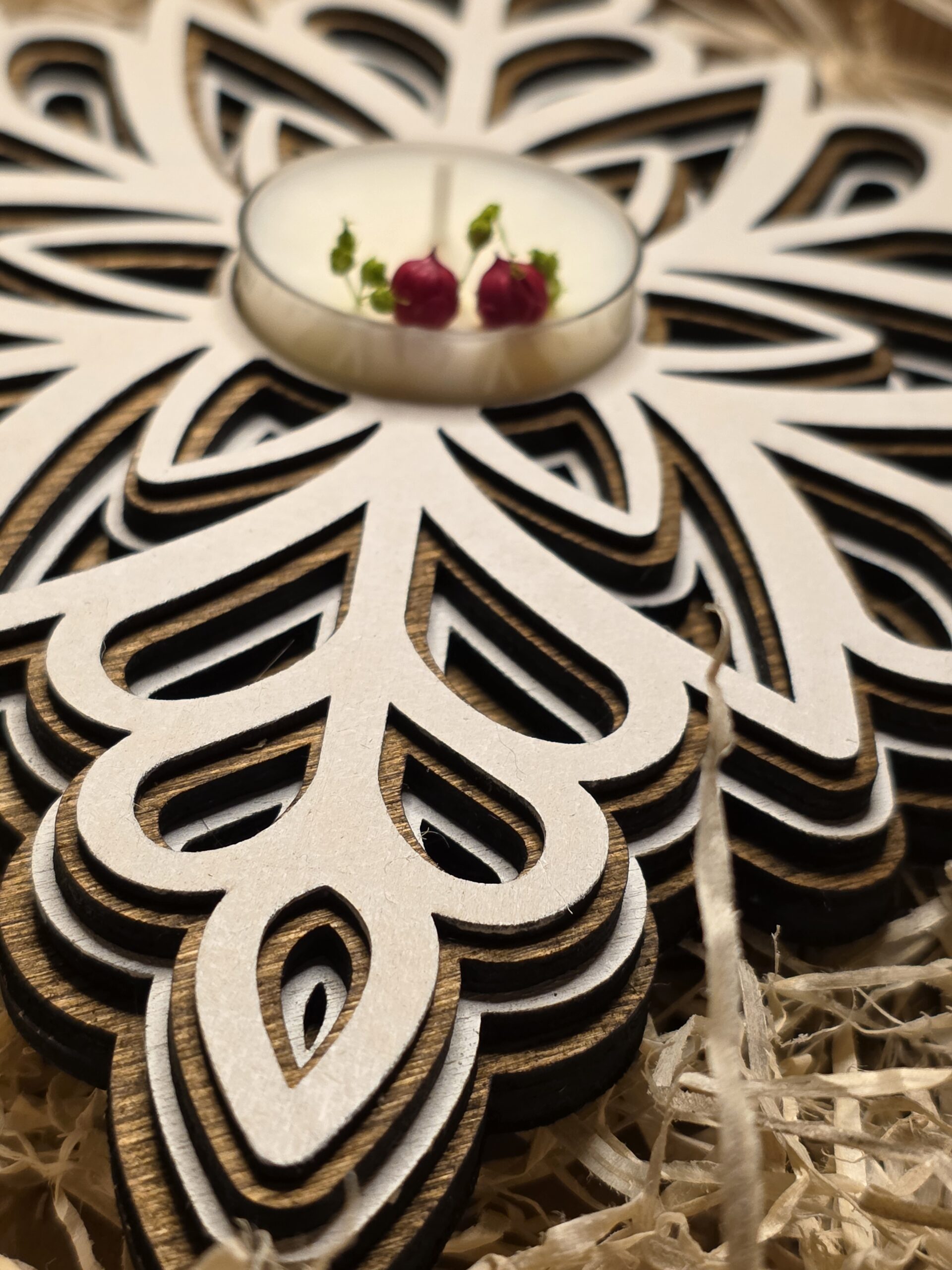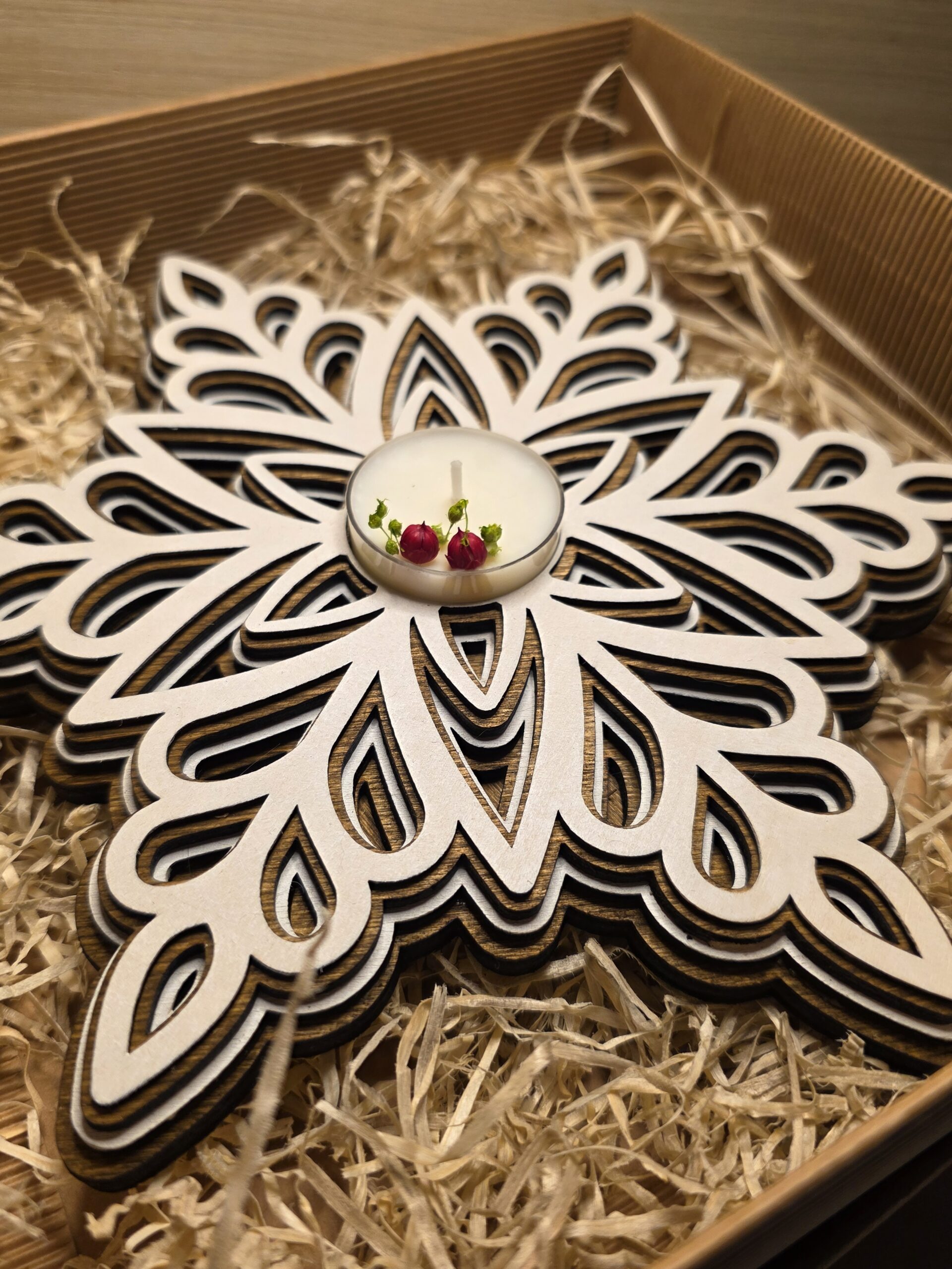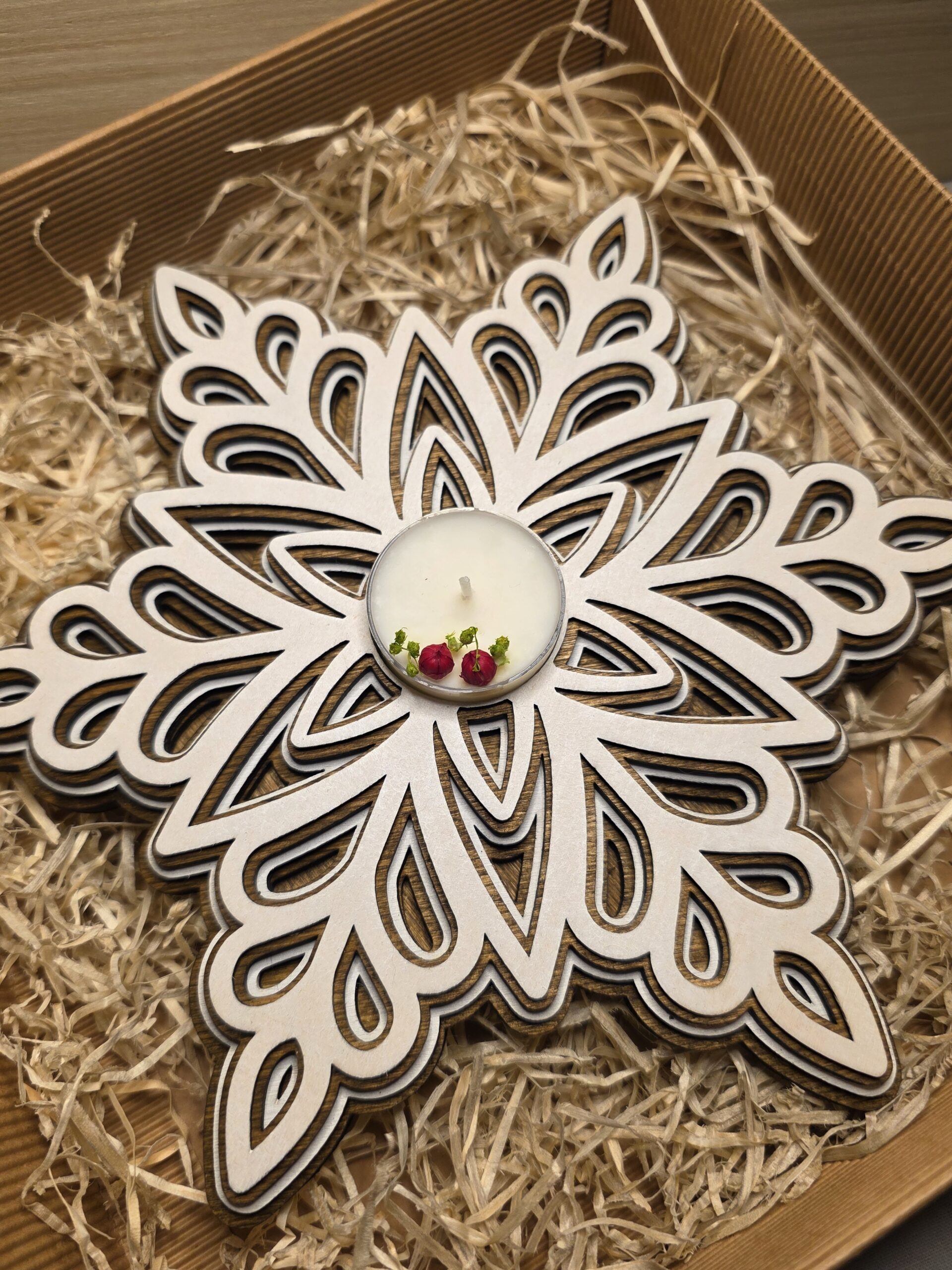 Portacandela a forma di fiocco di neve.