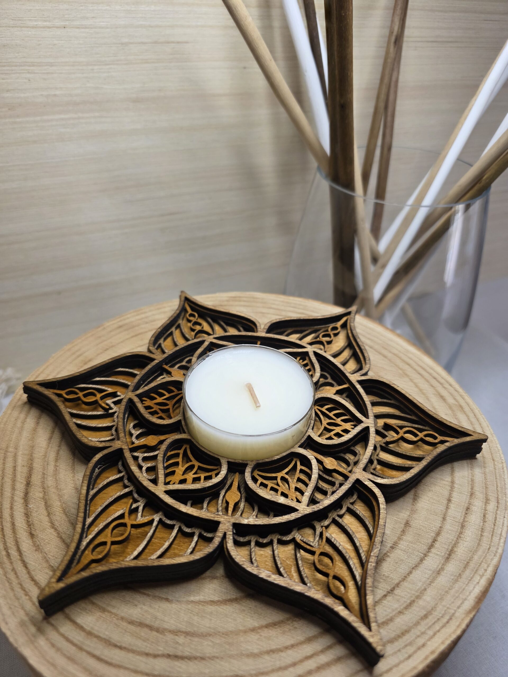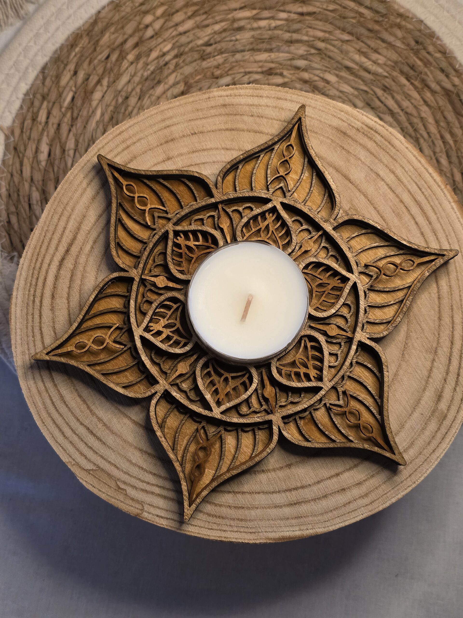 Ispirato alla forma armoniosa del fiore di loto e realizzato in legno naturale con una colorazione teak, dai toni più caldi e avvolgenti.